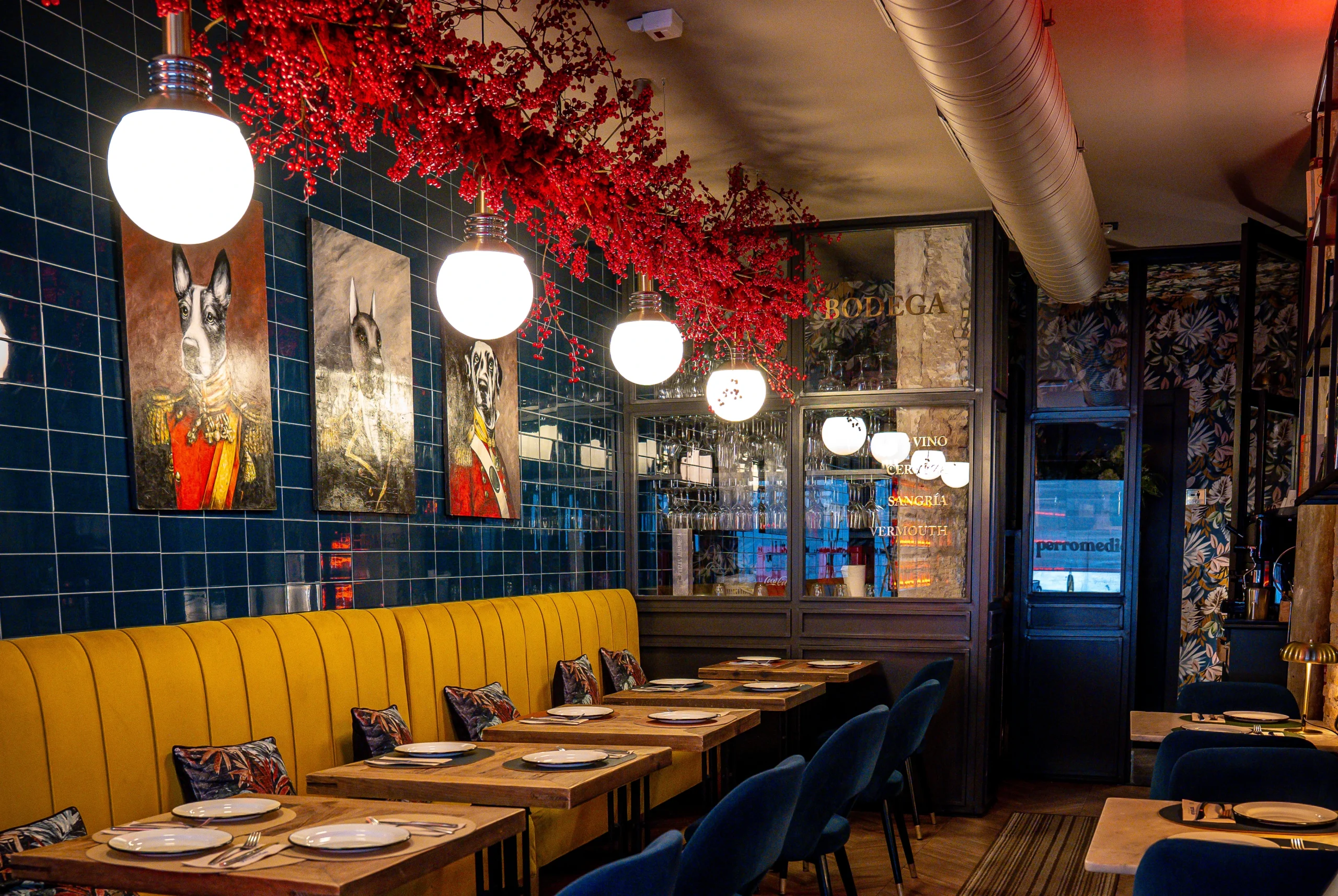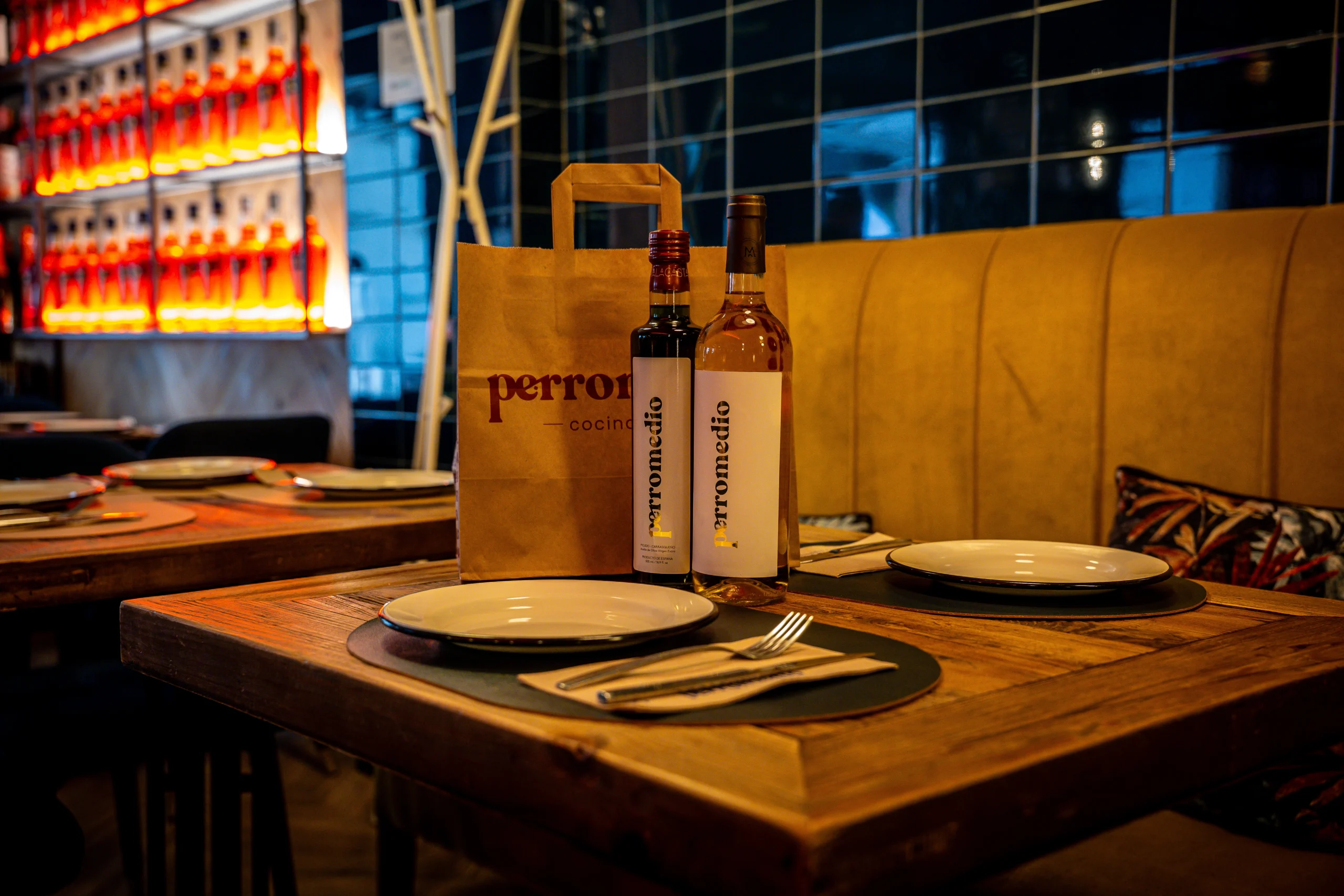 Restaurante Perromedio es un espacio donde cada detalle cuenta. Su interior combina materiales nobles, texturas cálidas y una iluminación que invita a disfrutar sin prisas. Cada rincón está pensado para que te sientas cómodo, rodeado de una atmósfera que mezcla lo contemporáneo con la esencia de una taberna andaluza.